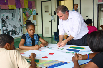 Mayor Nutter with students from William K. Dick elementary school at the Green 2015 launch event.