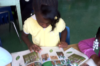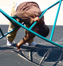 Testing the permeability of recycled rubber safety surfacing; Students in the green planting areas; Teachers "analyzing" the play equipment. Credit: Sophie Sarkar |