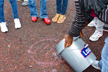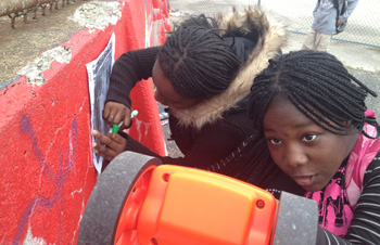 Tracing shadows in the schoolyard. Credit: Sophie Sarkar |