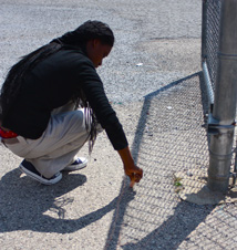 Students studied the movement of sunshine and shade throughout the schoolyard, tracing shadow lines, to determine where to potentially take advantage of greater sun for green planting areas and shade for hanging out and socializing.